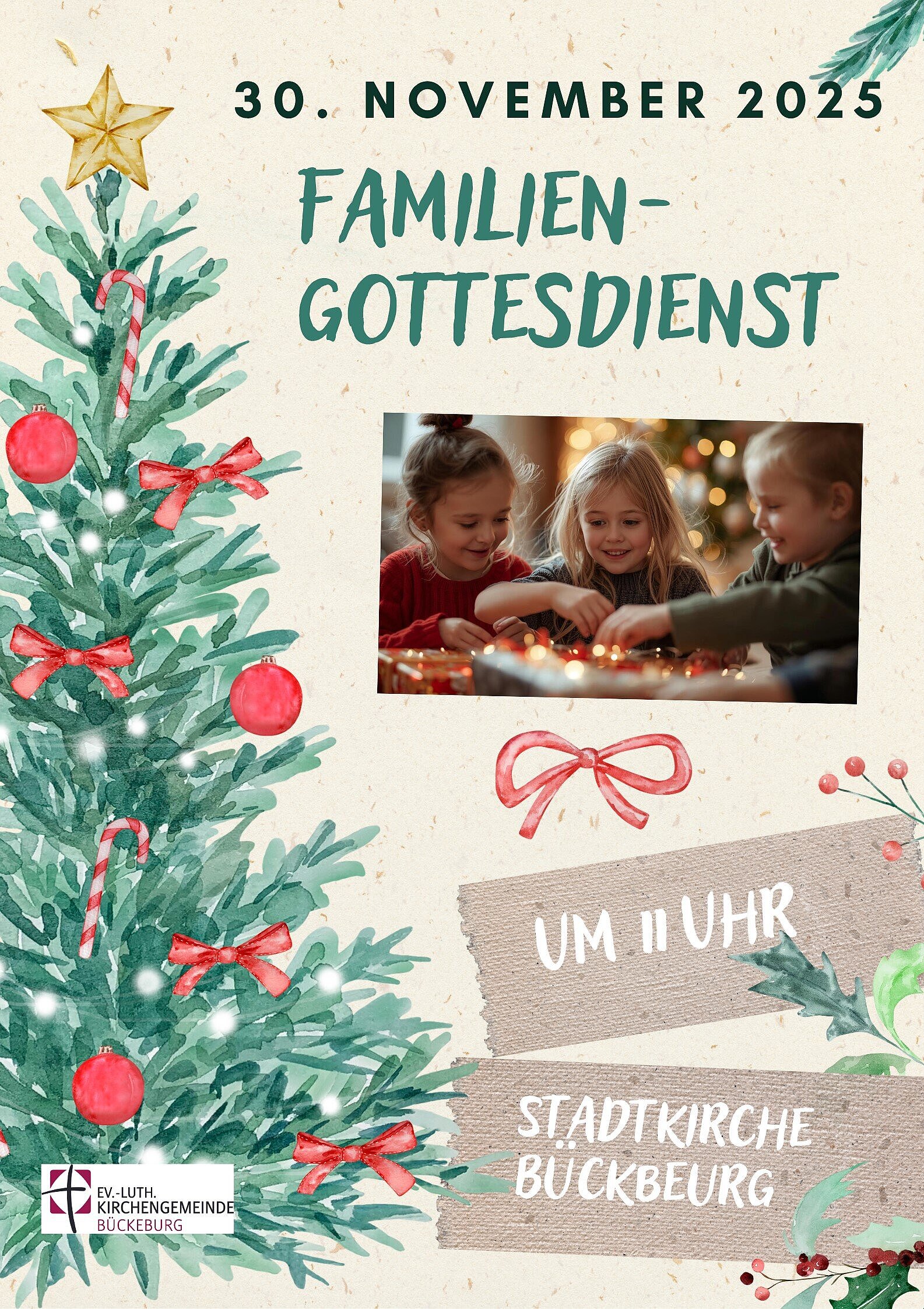 Familiengottesdienst mit Pastor Zapke und Team Meldung vom 27.10.2025 Kategorie: Stadtkirchengemeinde Sonntag, 30. November 2025 um 11 Uhr in der Stadtkirche Am kommenden Sonntag feiern wir um 11 Uhr einen sehr schönen Familiengottesdienst zum 1. Advent. Wir möchten Kinder und Eltern am Beginn der Adventszeit in diese wunderschönen Wochen einstimmen. Lassen Sie sich überraschen! < Führung auf dem Friedhof Scheier Straße Zur Übersichtsseite "Ein feste Burg ist unser Gott“ – Kirchenburgen in Siebenbürgen >